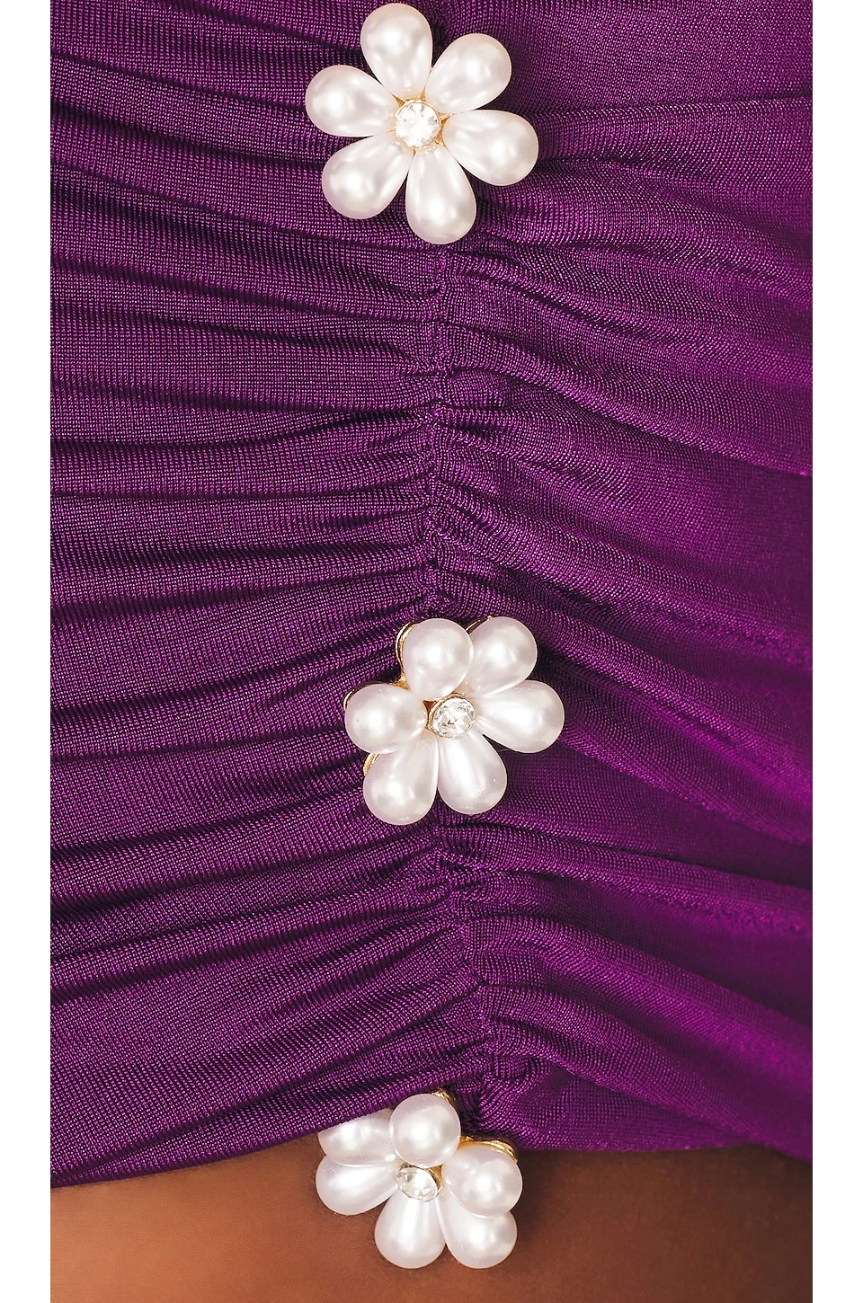 - Waist cut-out detail with floral accents at side