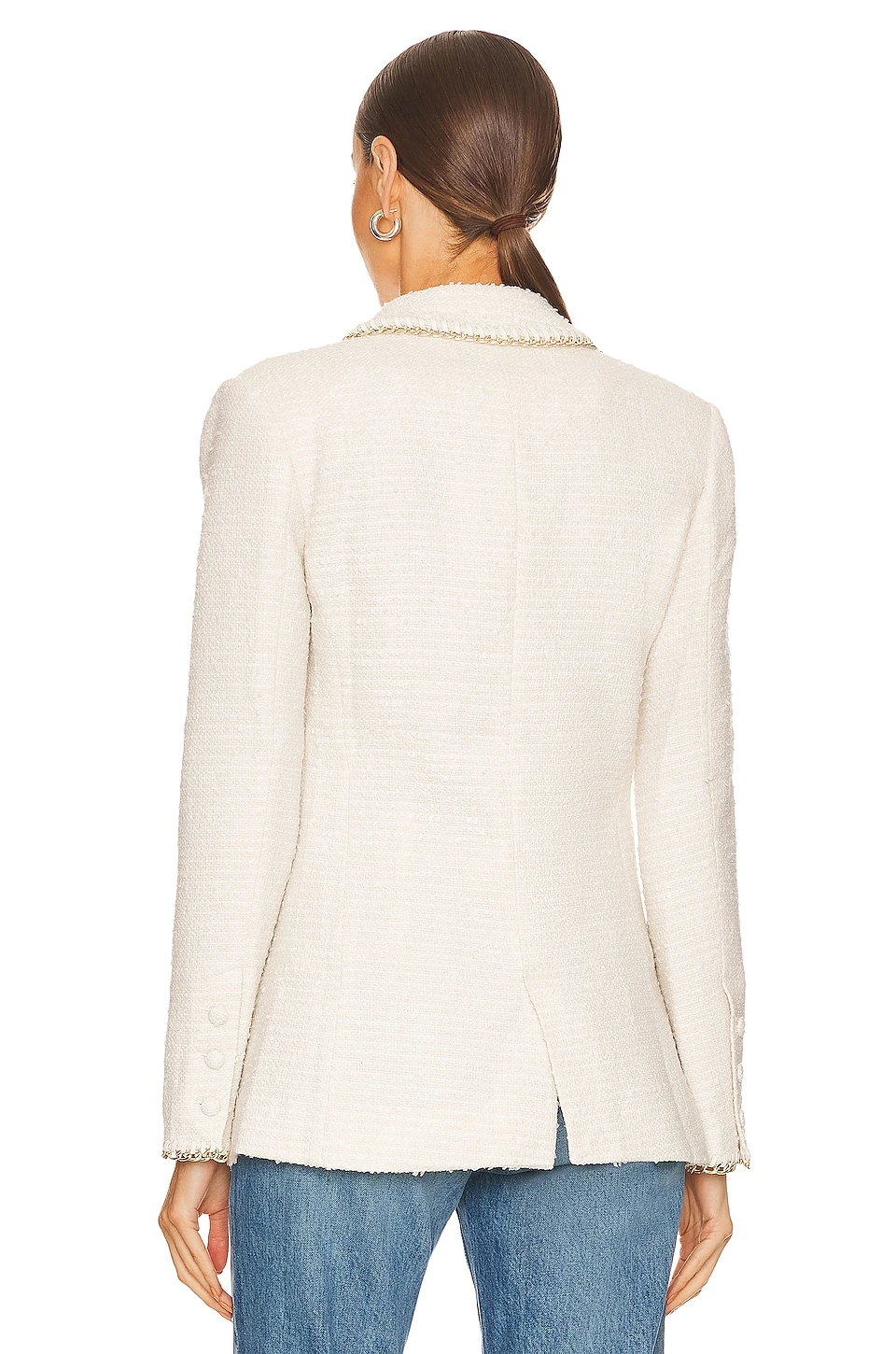 - Padded shoulders and buttoned cuffs
