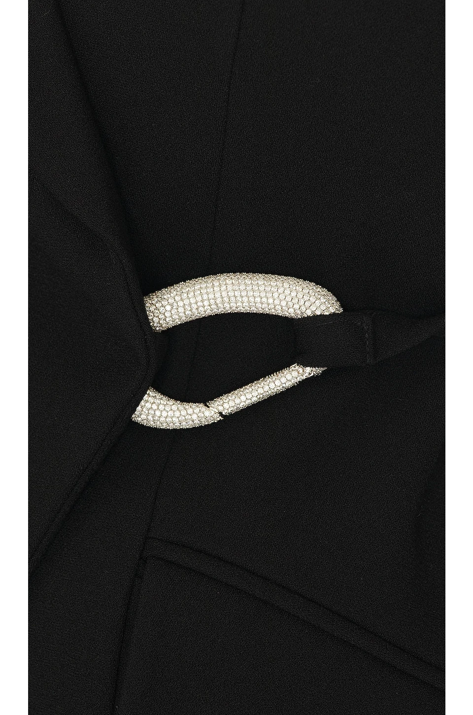 - Open front with crystal embellished clasp closure